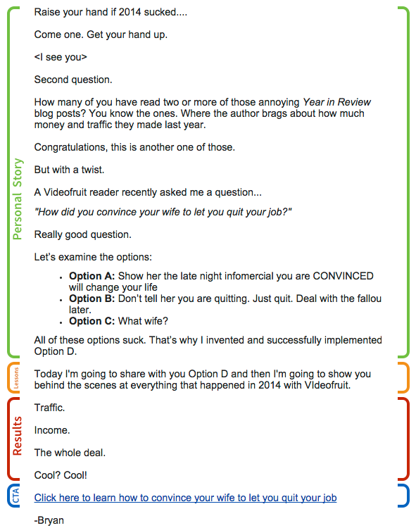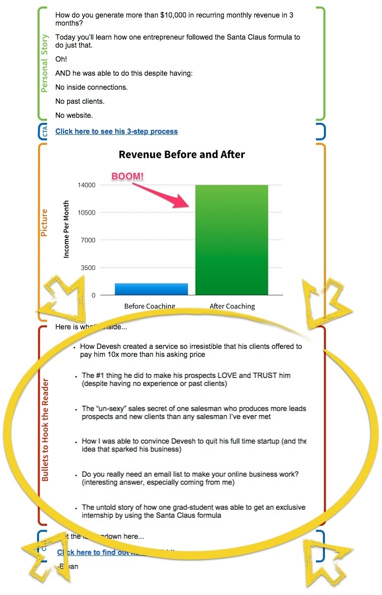 By showing the reader the results of taking action and then teasing the information they’ll learn, you will be able to drastically increase the responsiveness of your email list.