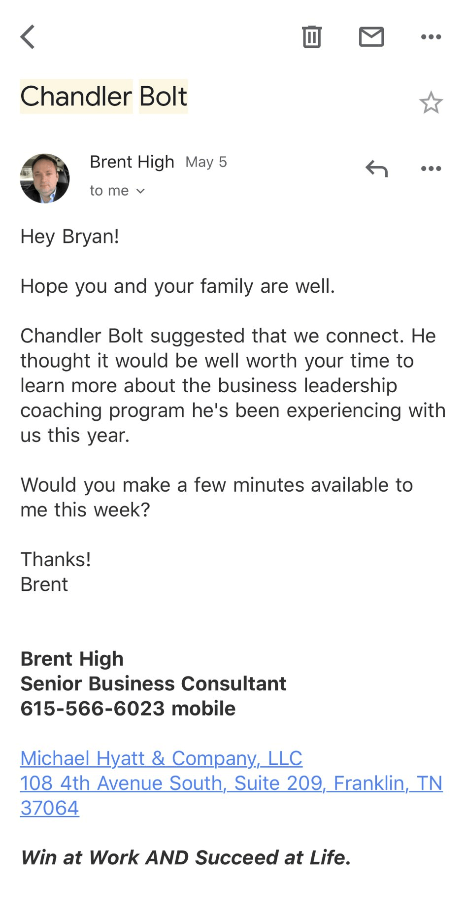 If you can’t get them to connect you directly, you could still reach out to the person your client thought of and mention the referral like Brent High did in this email to me:
