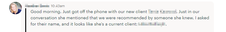 - When someone refers you to a single individual they know (i.e., swipe copy that the client could use to send a direct message to their friends and/or colleagues).