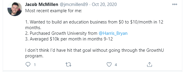 The past six months I’ve doubled revenue from my course business by following Growth University’s marketing plan. Their coaches tell me exactly what I need to work on and the results speak for themselves.